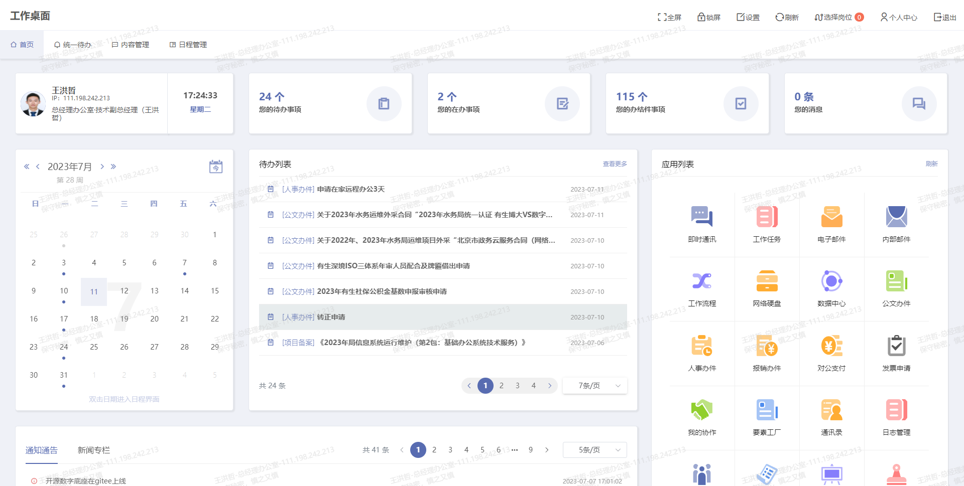 工作桌面、工作流程、即時(shí)通訊、網(wǎng)絡(luò)硬盤(pán)、電子郵件五大核心部件